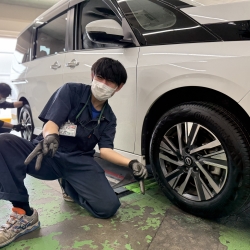 テスラのタイヤ交換もお任せください!!専用パッド完備!!