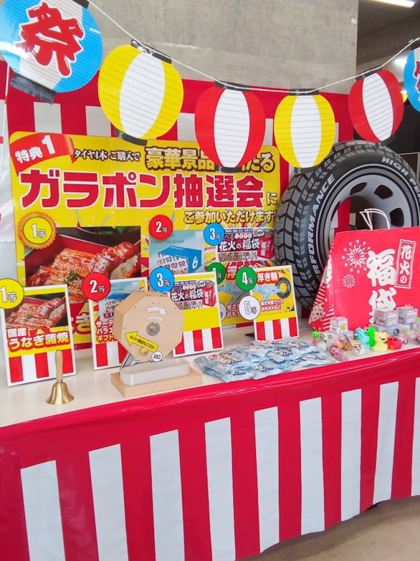 只今、タイヤ市場で ガラポン抽選会 開催中です!