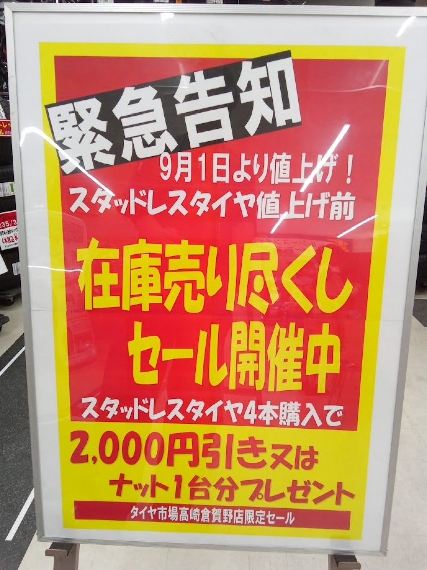 スタッドレスタイヤ 値上げまで あと 10日! 安く買うなら 今月中に!