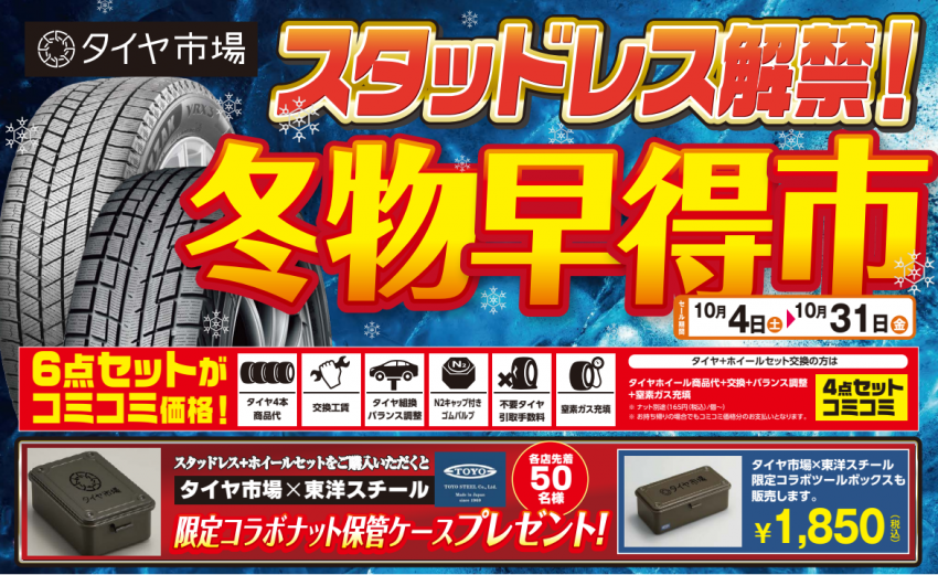 タイヤ市場の 冬物早得市 残り10日です! ナット保管ケース プレゼント まだあります!