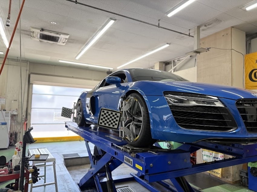 先日、アウディR8のアライメント調整を作業させていただきました(; ・`д・´)