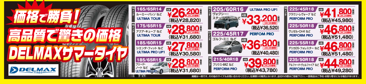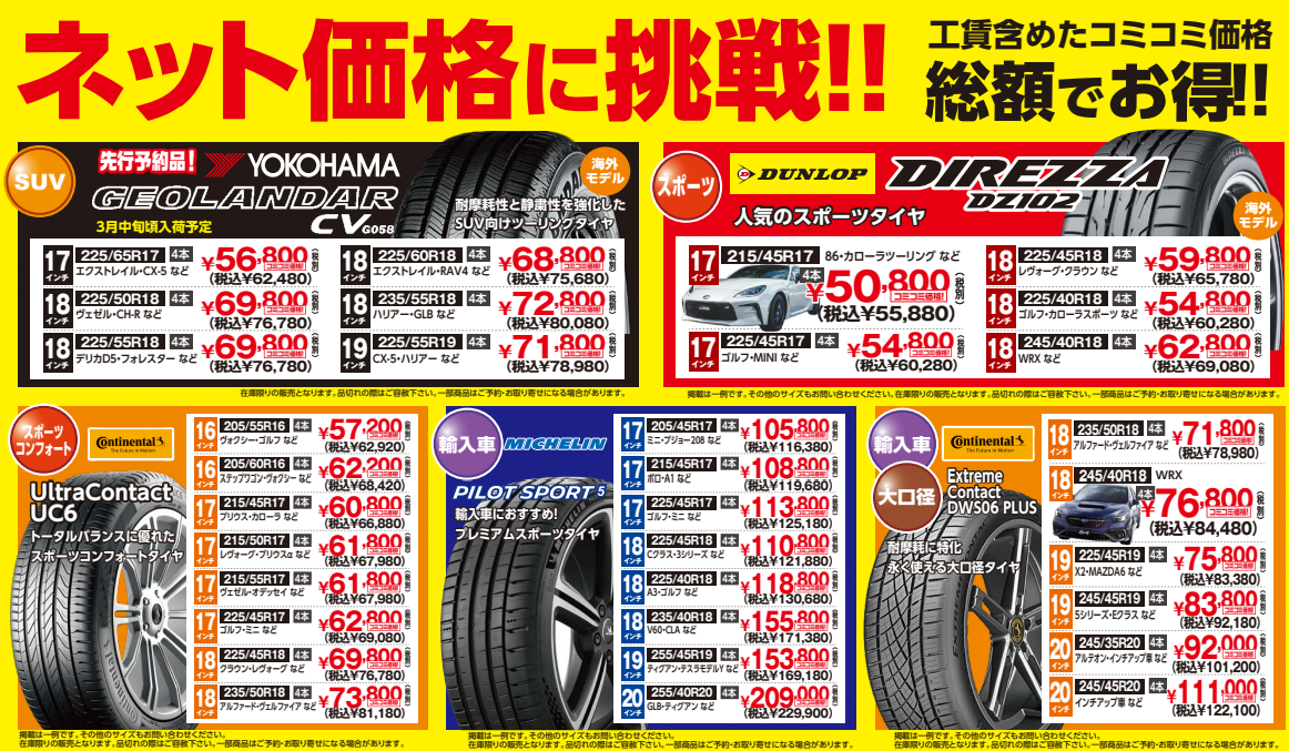 本日より タイヤ大商談会 開催中です! 有名ブランドが安い!