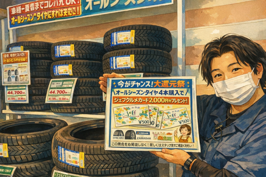 オールシーズンタイヤご購入でグルメカードプレゼント⁉