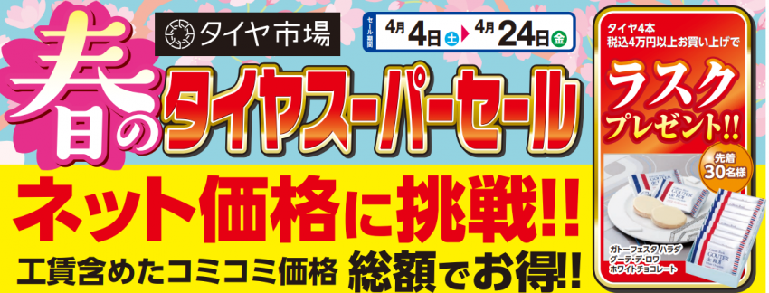 タイヤ市場の 春の タイヤ スーパーセール 開催中!