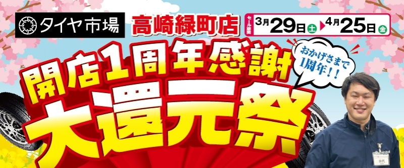 3月にタイヤ市場高崎緑町店がオープンします。