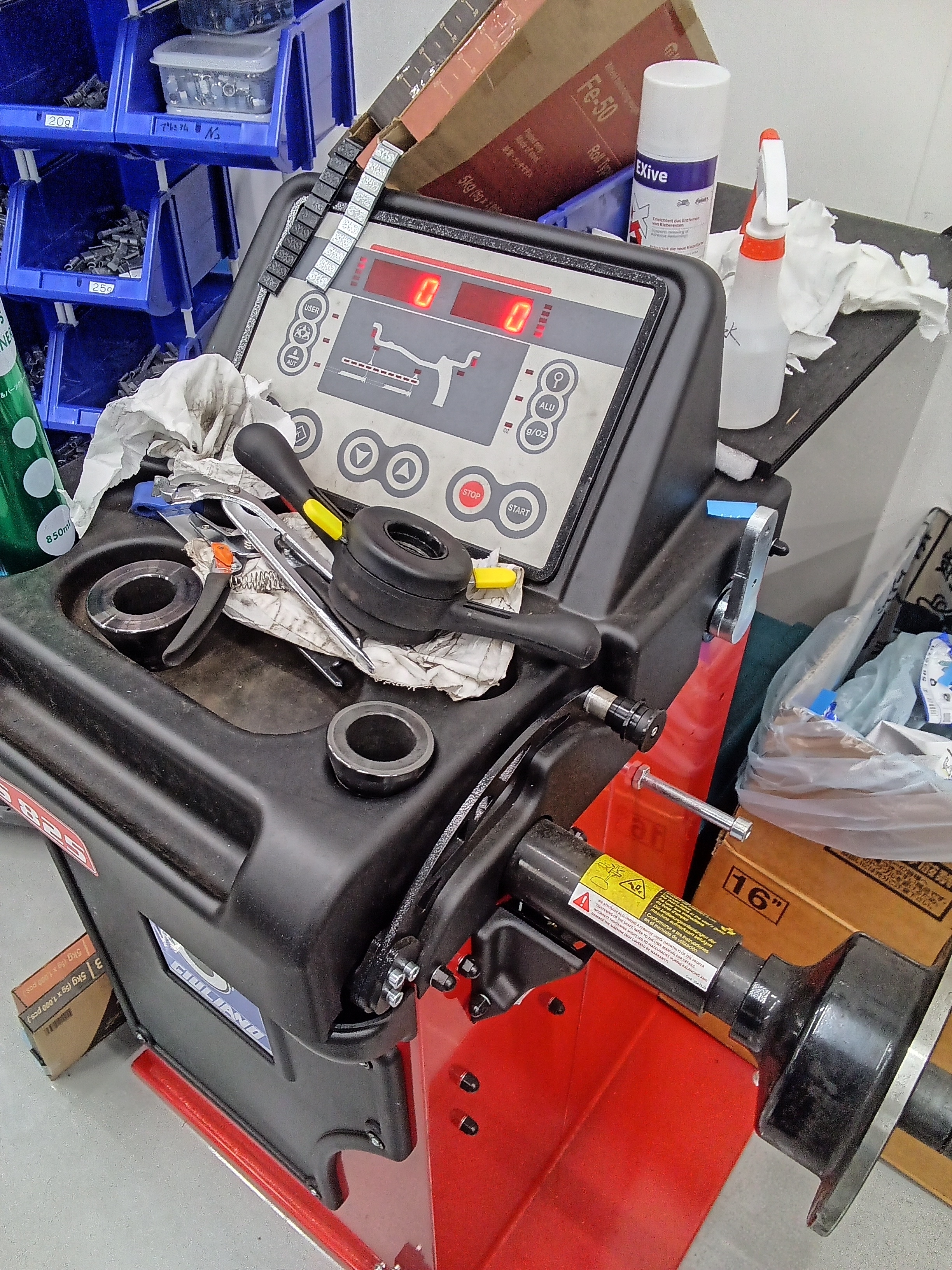 こちらは組み込み後のタイヤのバランスをとり、タイヤをより真円に近づけてあげることにより、走行時のハンドルのブレやがたつきを防ぐ作業に使っています‼