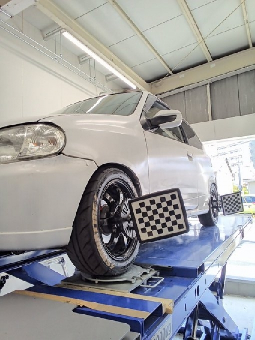 本日はスズキのアルトワークスのアライメント調整をさせて頂きました!