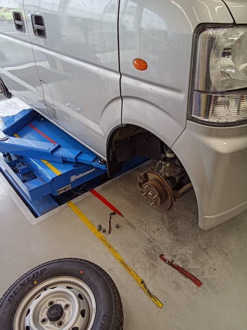 エブリイにお乗りのお客様にお持ちいただいたタイヤを装着させていただきました!タイヤ市場では持ち込み交換作業大歓迎です!