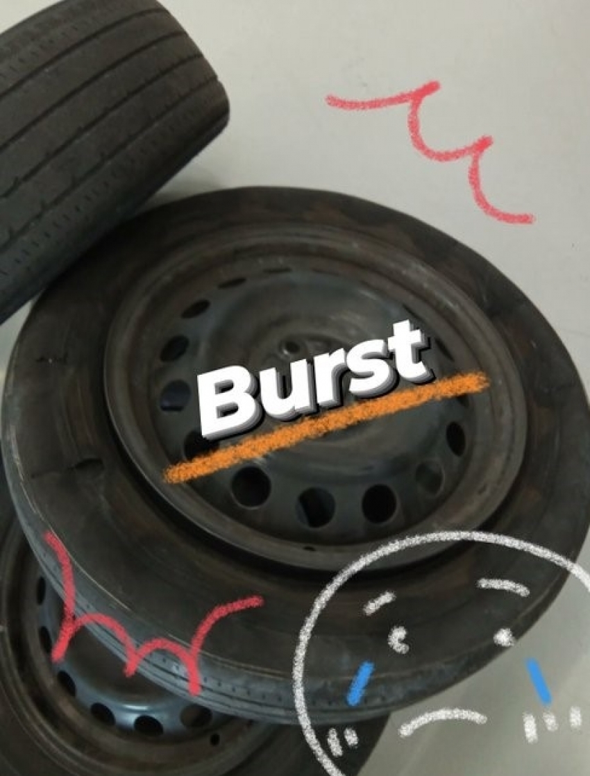 そして空気圧不足のまま走ってしまうと、タイヤに熱を持ち始めバーストする恐れがあります!