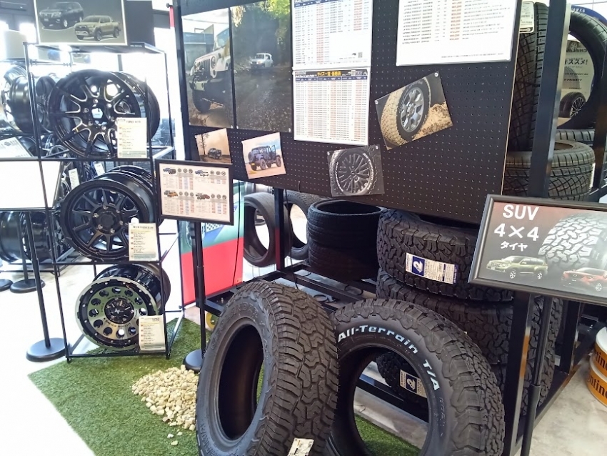 店内展示がグレードアップ!ごつごつタイヤやホイールなどドレスアップを検討中の方はタイヤ市場高崎緑町店へ!