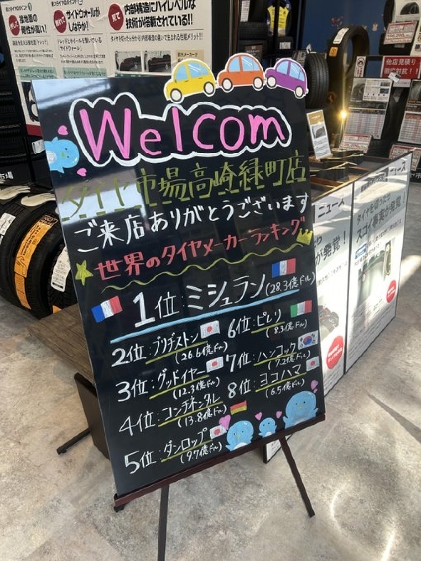 高崎市周辺にお住みの方必見です!店内のポップを書き直ししました!タイヤの事ならタイヤ市場高崎緑町店にお任せください!