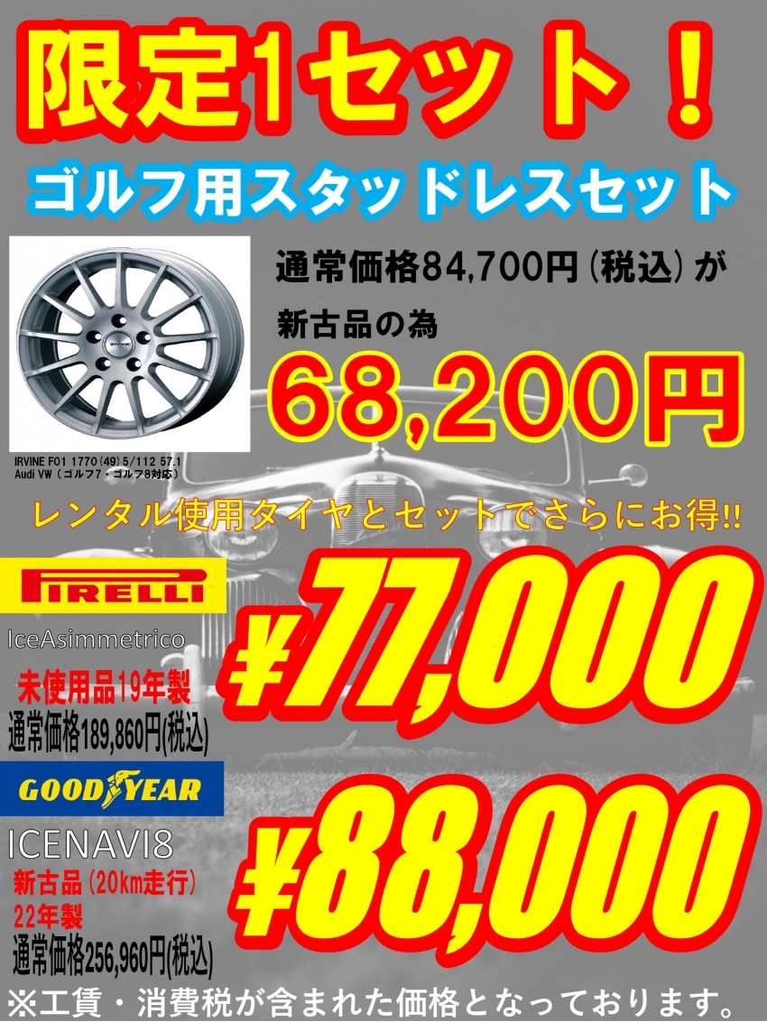 【限定1台】フォルクスワーゲンゴルフ乗り必見!!ゴルフ用スタッドレスホイールセットが税込77,000円~!?