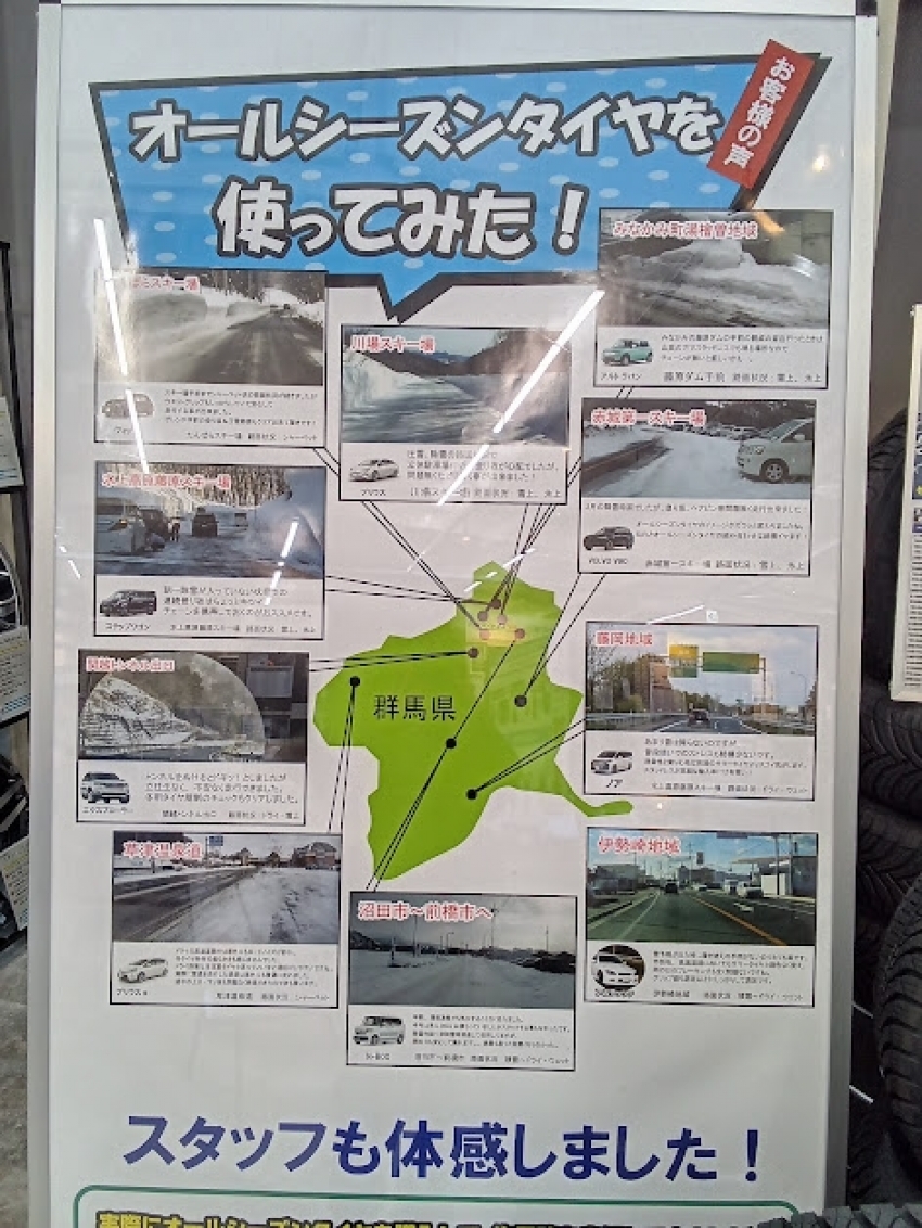 オールシーズンタイヤ、初めて履くときは少し不安、、タイヤ市場は性能比較テストもしています!詳しくはお店へご来店、お問合せお待ちしています!