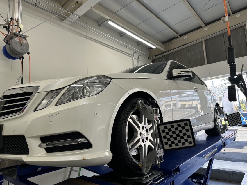 ベンツ Eクラスで持ち込み組み換え&アライメント調整!!