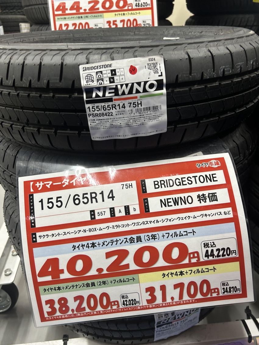 【ブリヂストン・ニューノ】の155/65R14が安く交換できちゃいます(^^♪