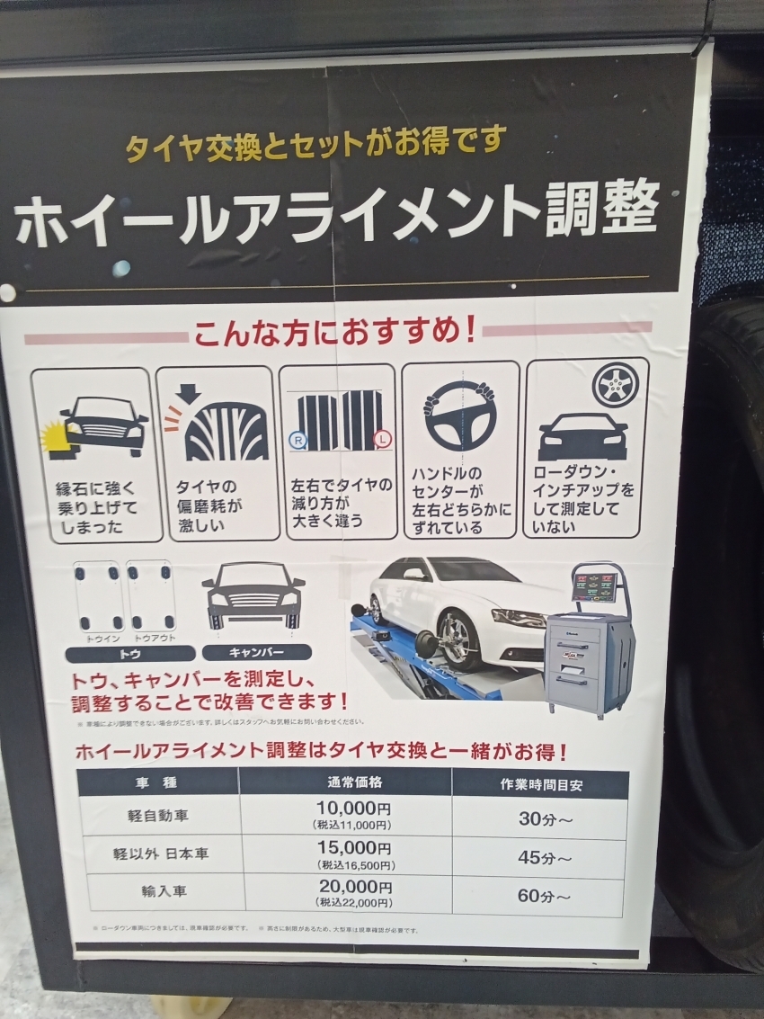 アライメントとは、車体に対しホイールの位置、角度、方向が