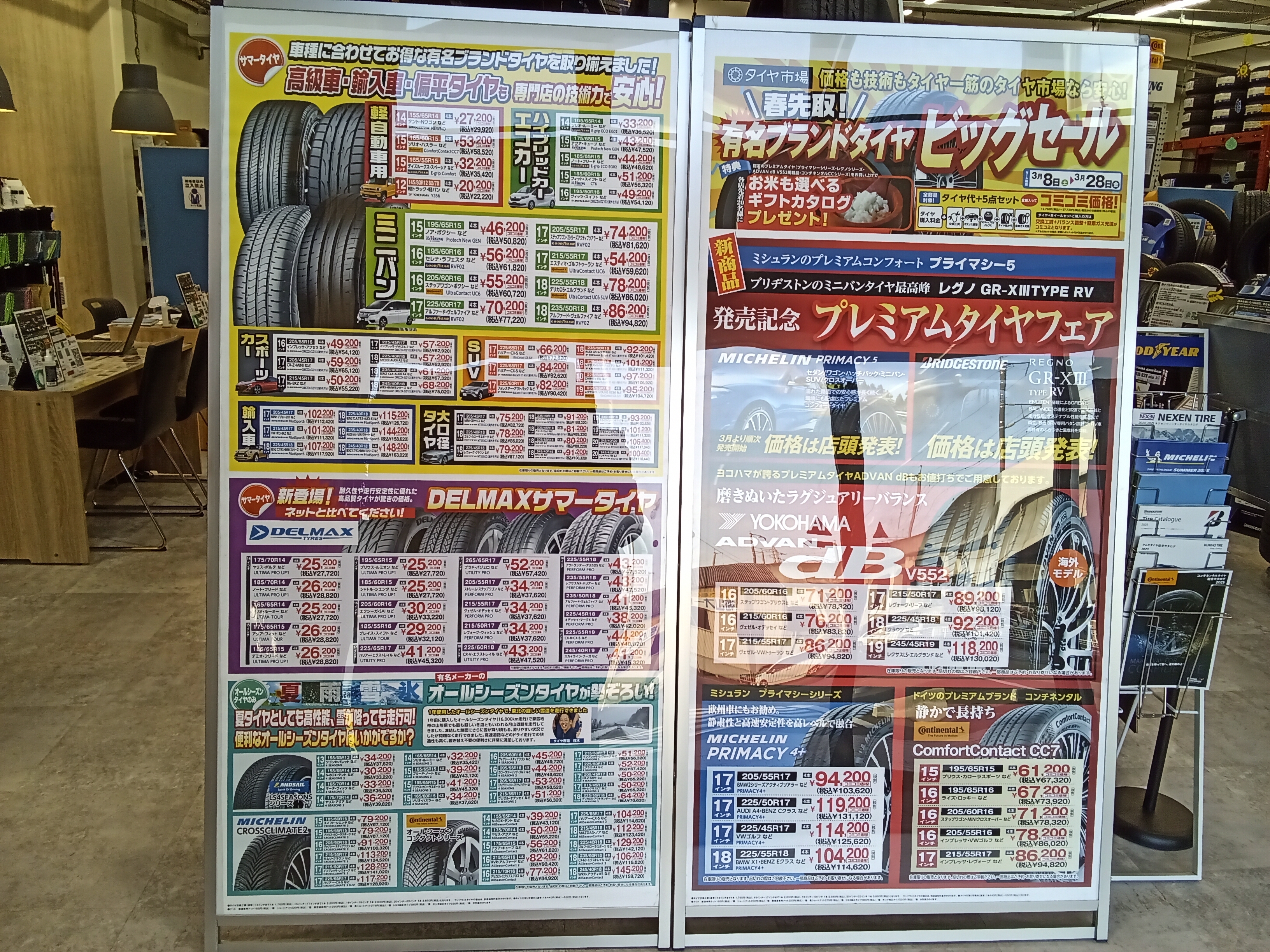 サマ-タイヤ、オールシーズンタイヤ等お探しの方、アライメント調整が気になる方、是非ご来店下さい!