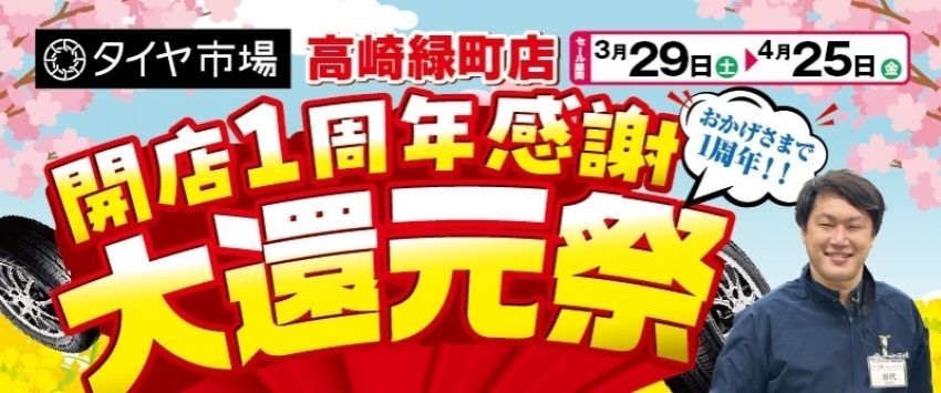 開店一周年大還元祭 まだまだ開催中!どうせ買うなら早めがおすすめ!今だから買えるお得タイヤも多数!