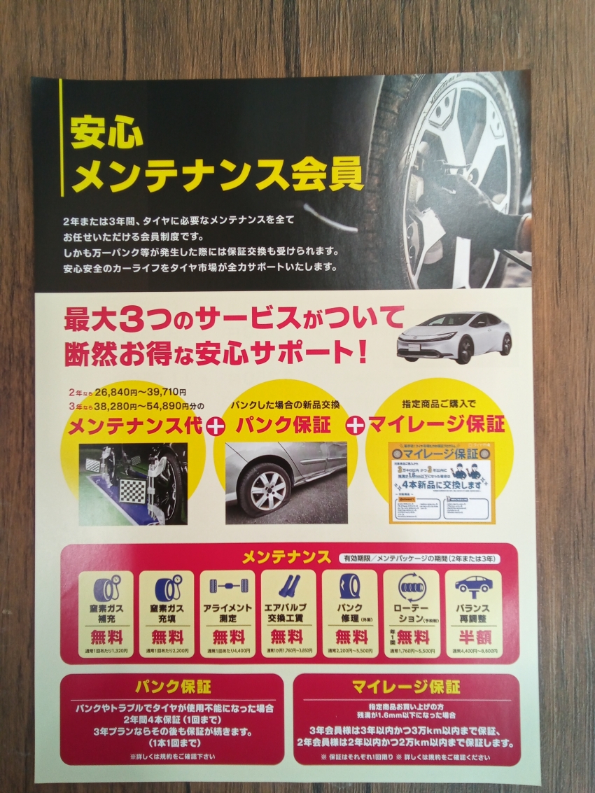タイヤ市場 安心メンテナンス会員のご案内です!!