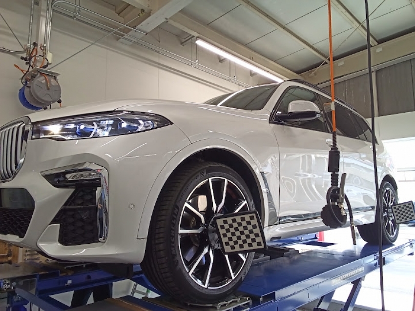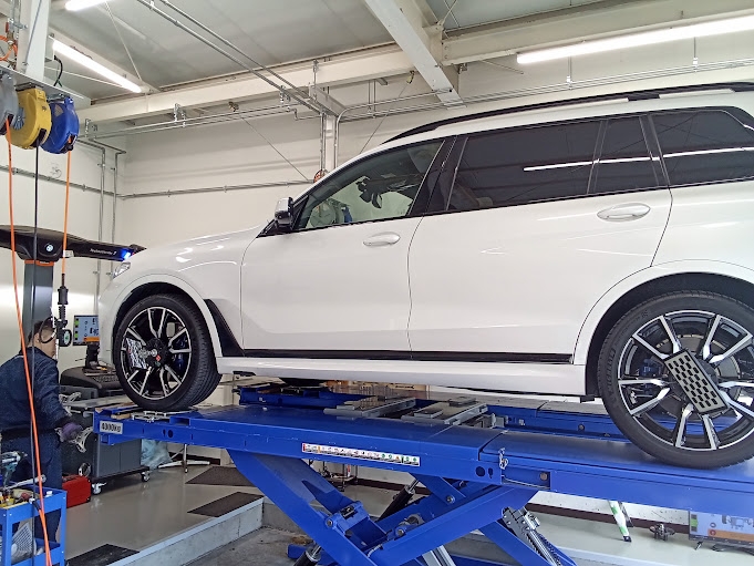 BMW X7 アライメント調整 輸入車の作業も大歓迎!タイヤ交換、アライメント調整リーズナブルに承ります!