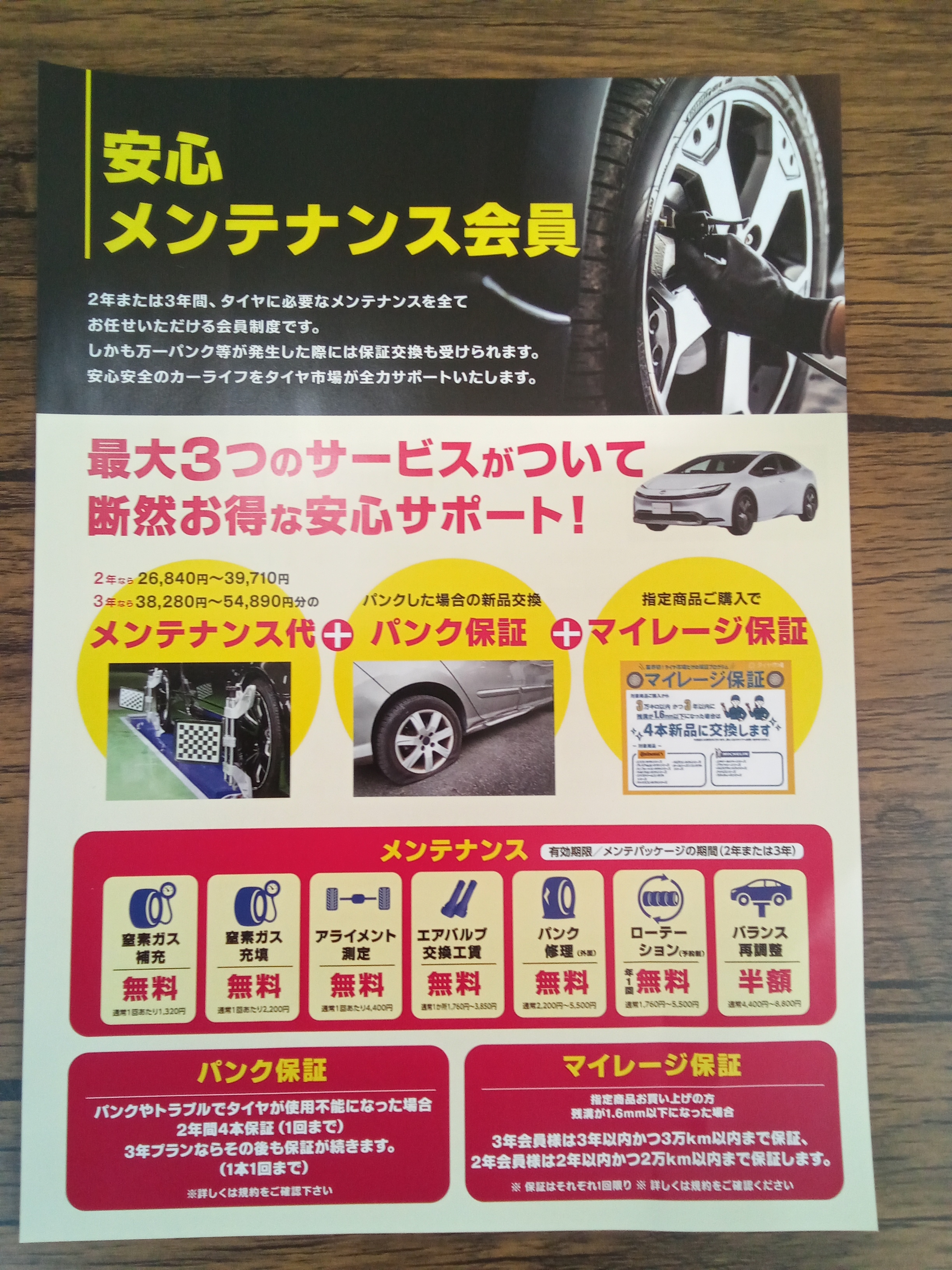 タイヤも年々値上がりしているので『安心』も一緒に買えるメンテナンス会員に入会するのがオススメ(^▽^)/