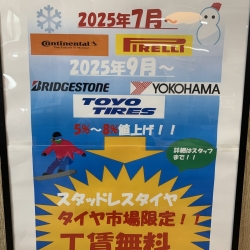 こんにちは!タイヤ市場高崎緑町店です。