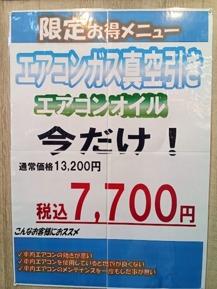 今日も暑い、、明日も暑い、、「エアコンガス真空引き」でお車をキンキンに冷やしましょう(^▽^)/ 当日作業も大歓迎!お気軽にご相談ください!