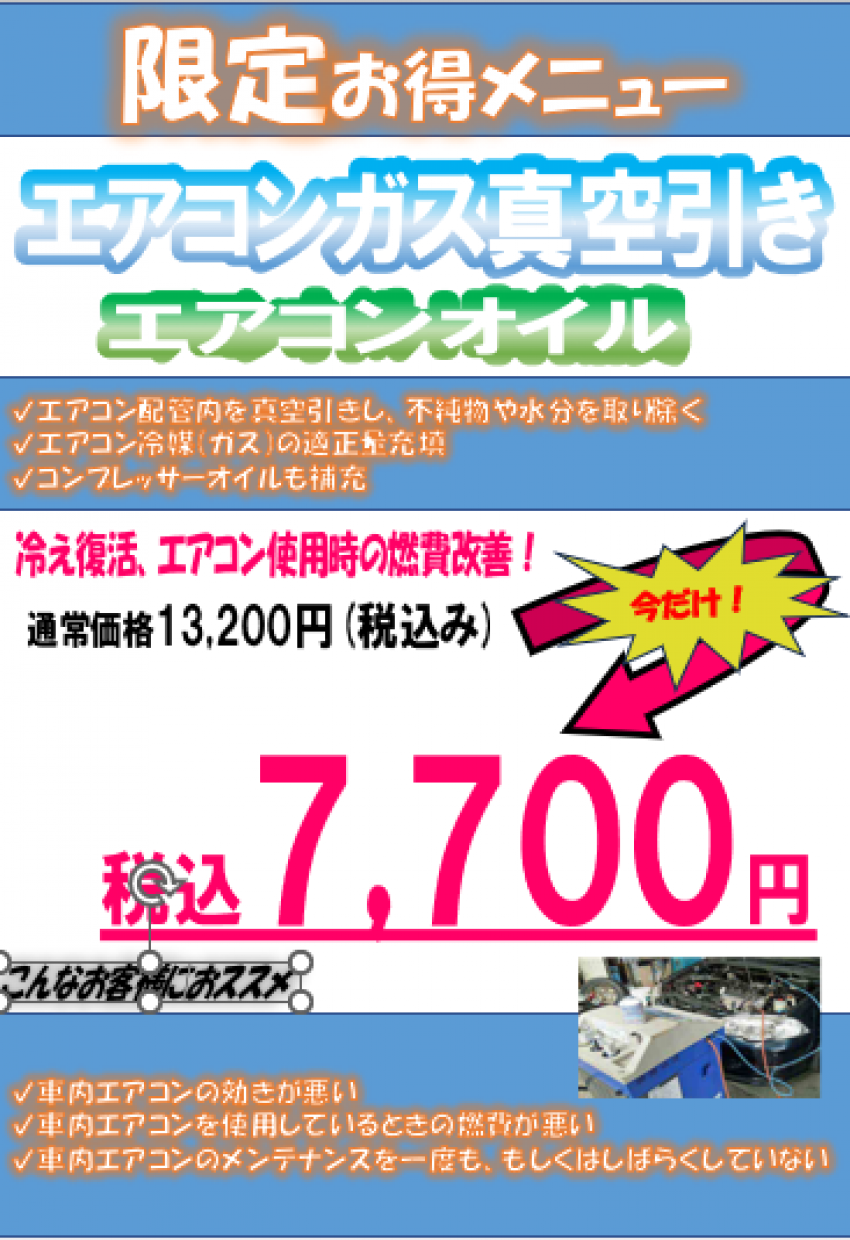 その「エアコンガス真空引き」が只今限定価格 7,700 円 でのご案内!