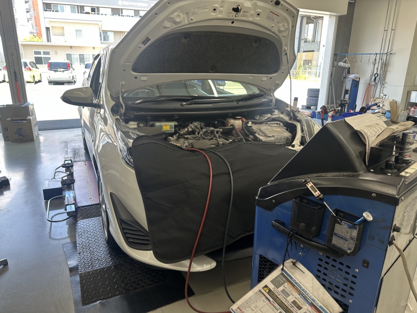トヨタ アクアでエアコンガス補充!