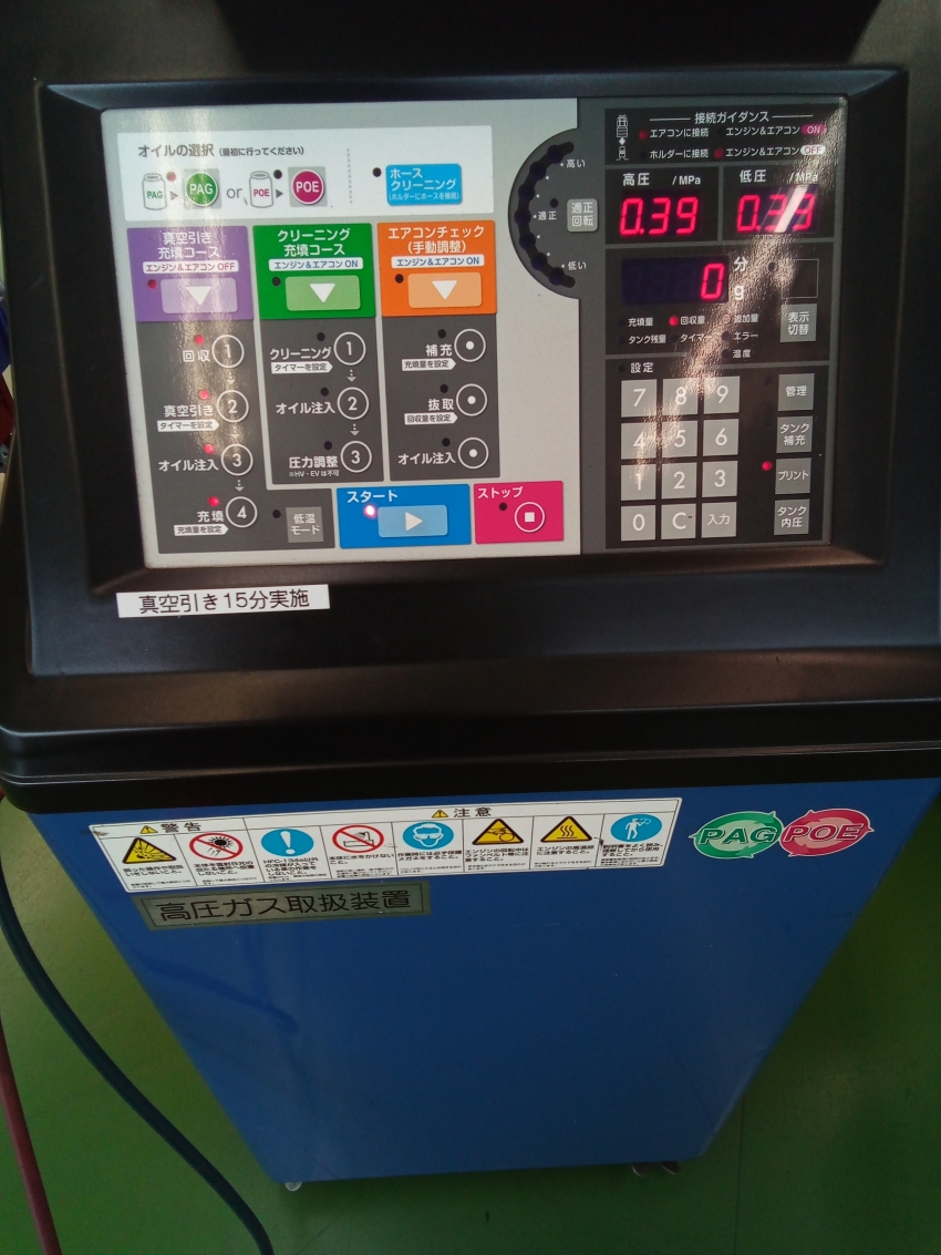 規定量の冷媒ガスと、新たなコンプレッサーオイルを入れ直す事で