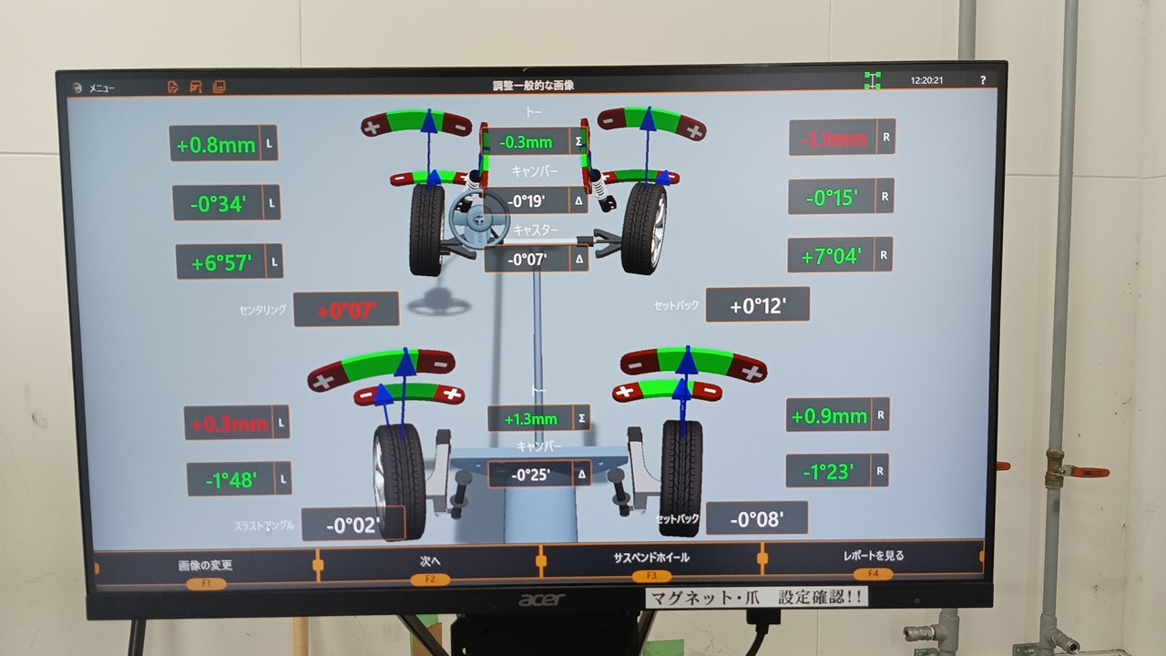 タイヤ4本交換に合わせアライメント調整させて頂きました!乗り味など改善されればと思います!