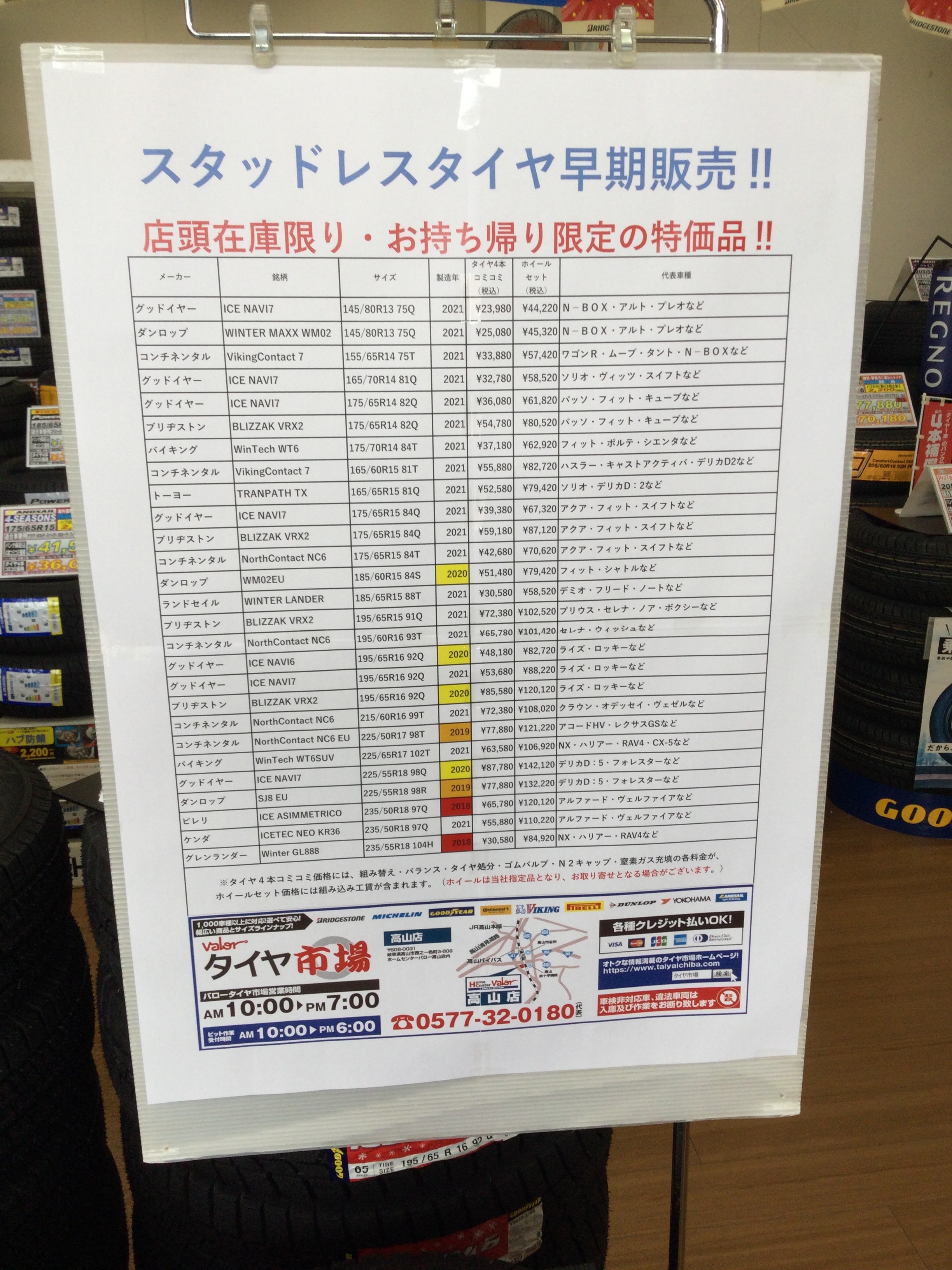 値上がり前の今!スタッドレスタイヤを購入するのをオススメしております!!