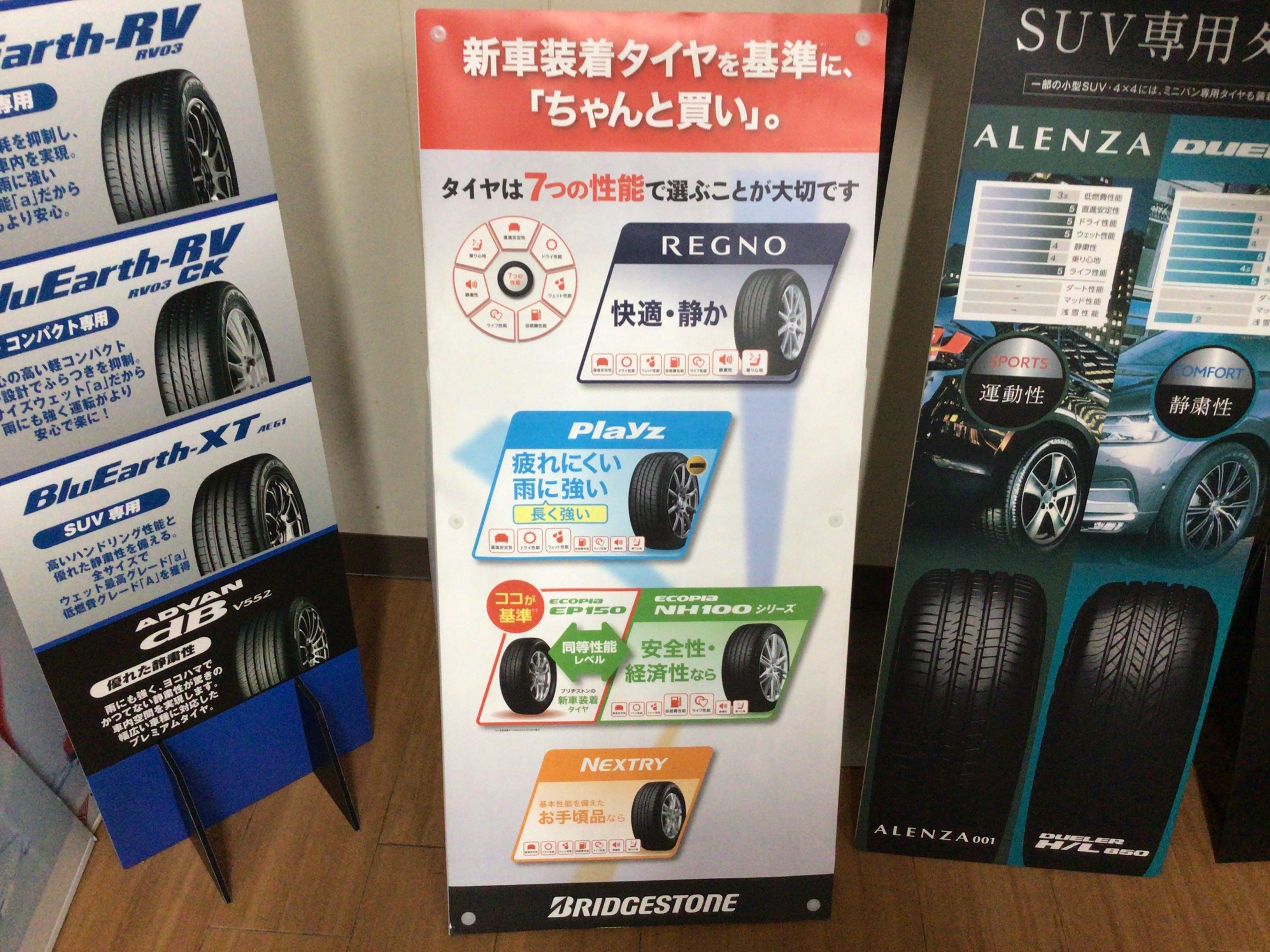 目安としては今ついているタイヤを比較するのがいいかもしれません。新車でついているタイヤはそこそこ性能が良いのでそこからお値段重視にするのか、今のタイヤと同等ぐらいにするのか、快適性を求めてワンランク上のタイヤを選ぶのかと目安になるかもしれません。BSの「ちゃんと買い」ってやつです