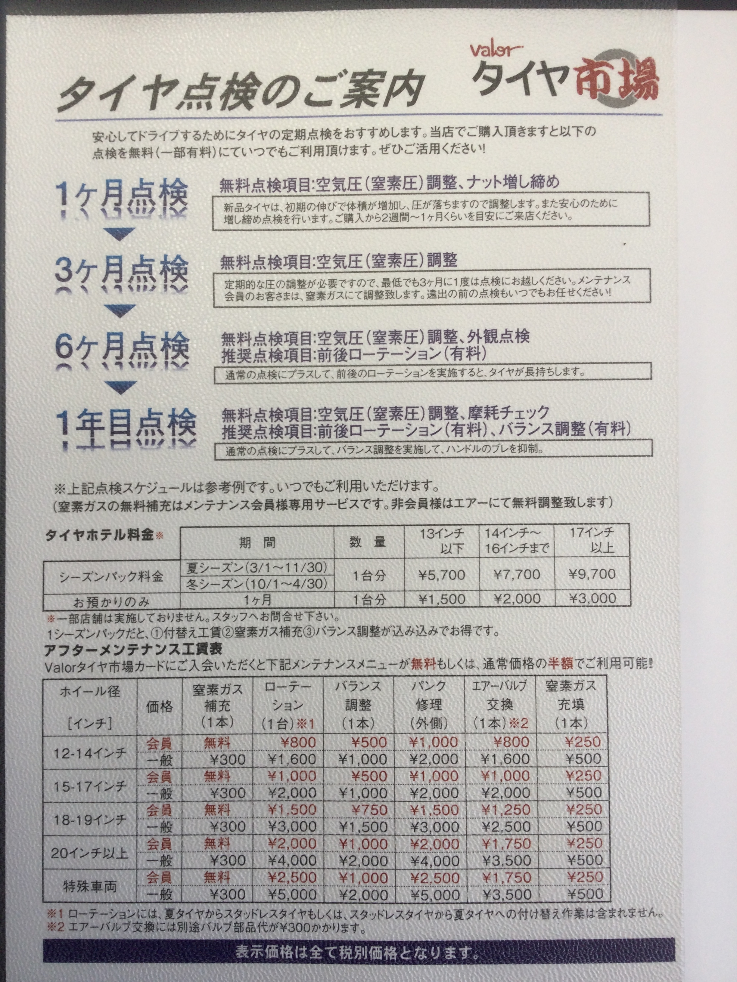 まず、タイヤ市場カードですが、お客様にタイヤを長く使っていただく為に色々なアフターサービスをお値打ちにご利用していただけるものとなっております!!