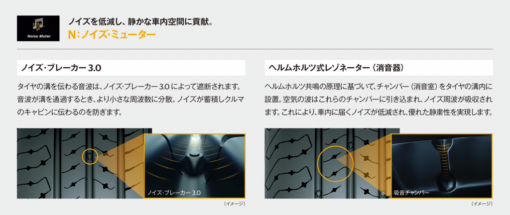 ちなみにテクノロジーの一つ、ヘルムホルツ式レゾネーターはブリヂストンのレグノにも使用されているテクノロジーなのです!!