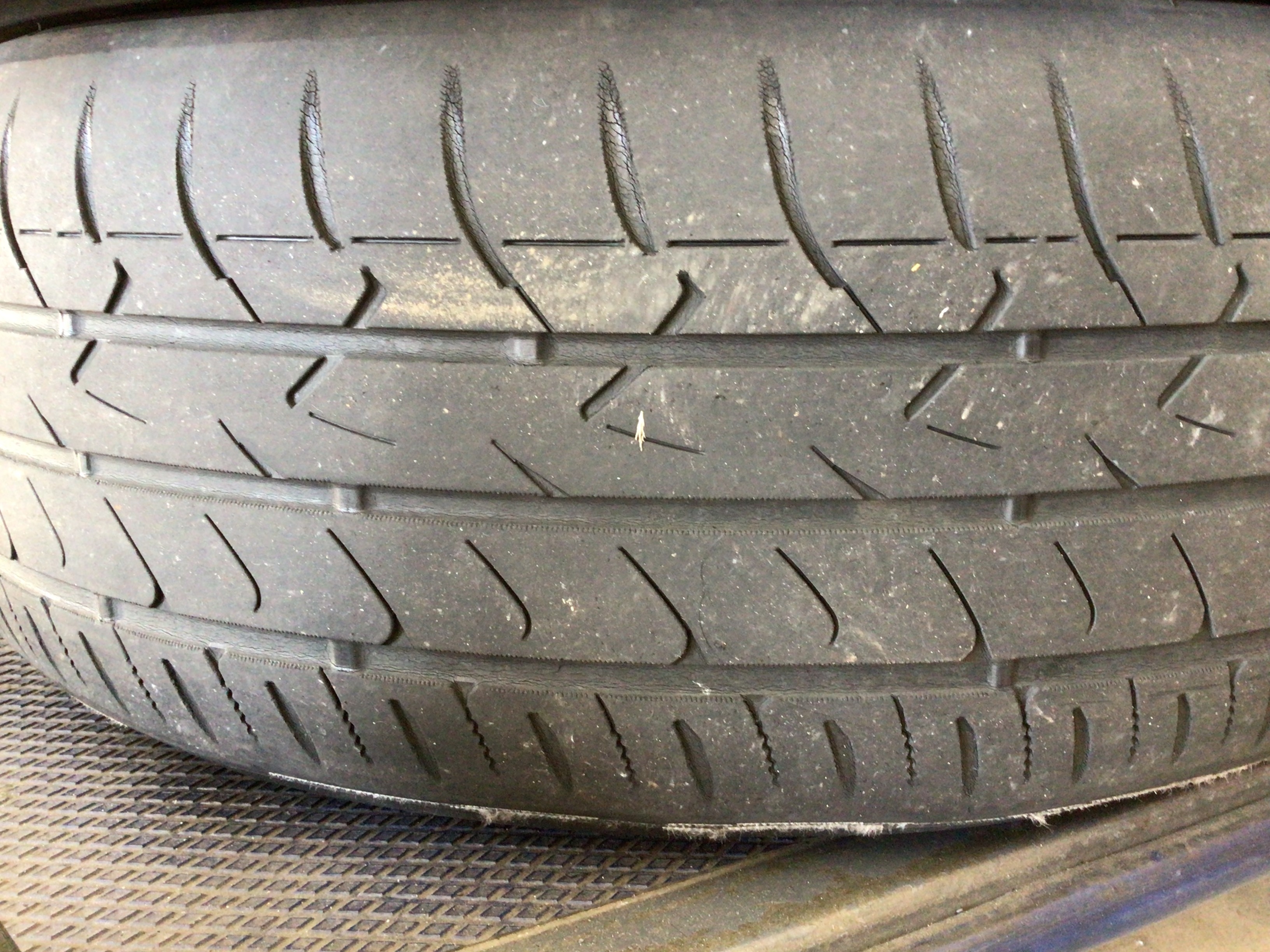 今回パンクでご来店のお車のタイヤですが両肩減りの片方が限界を超えて摩耗してしまいパンクしていました