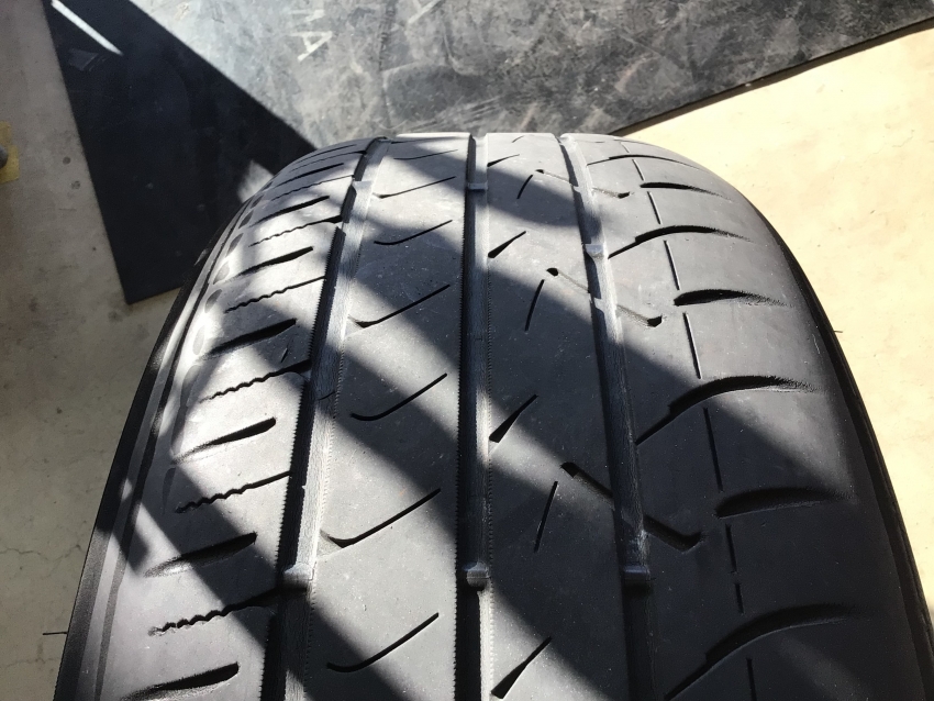 空気圧不足の状態で使用しているとこのように極端に両肩が摩耗していきます。さらに高速走行などするとスタンディングウェーブ現象によりバーストしてしまう危険性が出てきます。