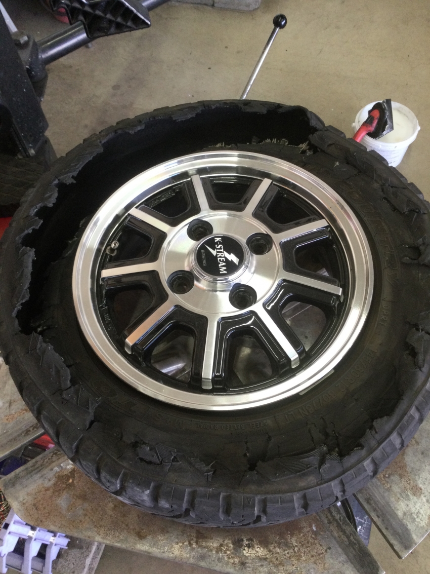空気圧が少ない状態で走行するとタイヤがバーストする危険性が高まります。