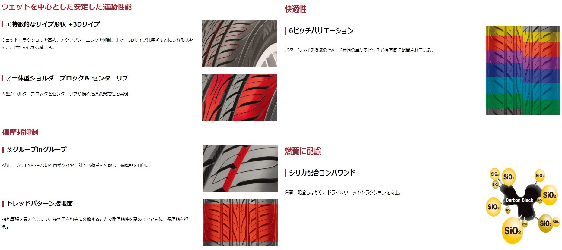 18インチ以上のドレスアップタイヤですが基本性能はしっかりとしています。(見た目も個人的に好きなパターン)