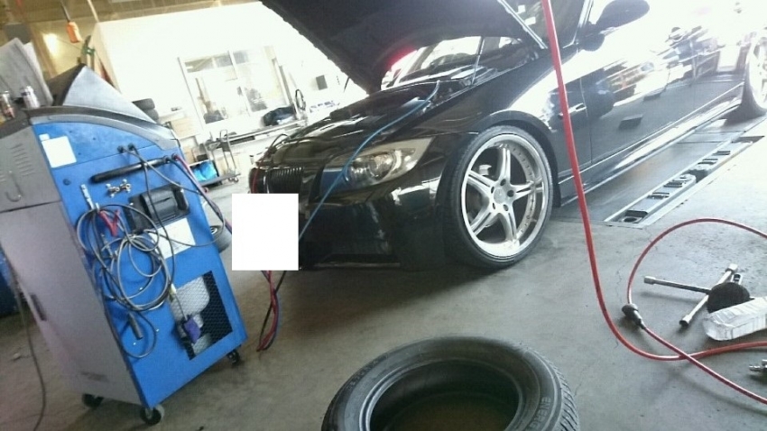 BMWのお客様にエアコンガスクリーニング作業を承りました。