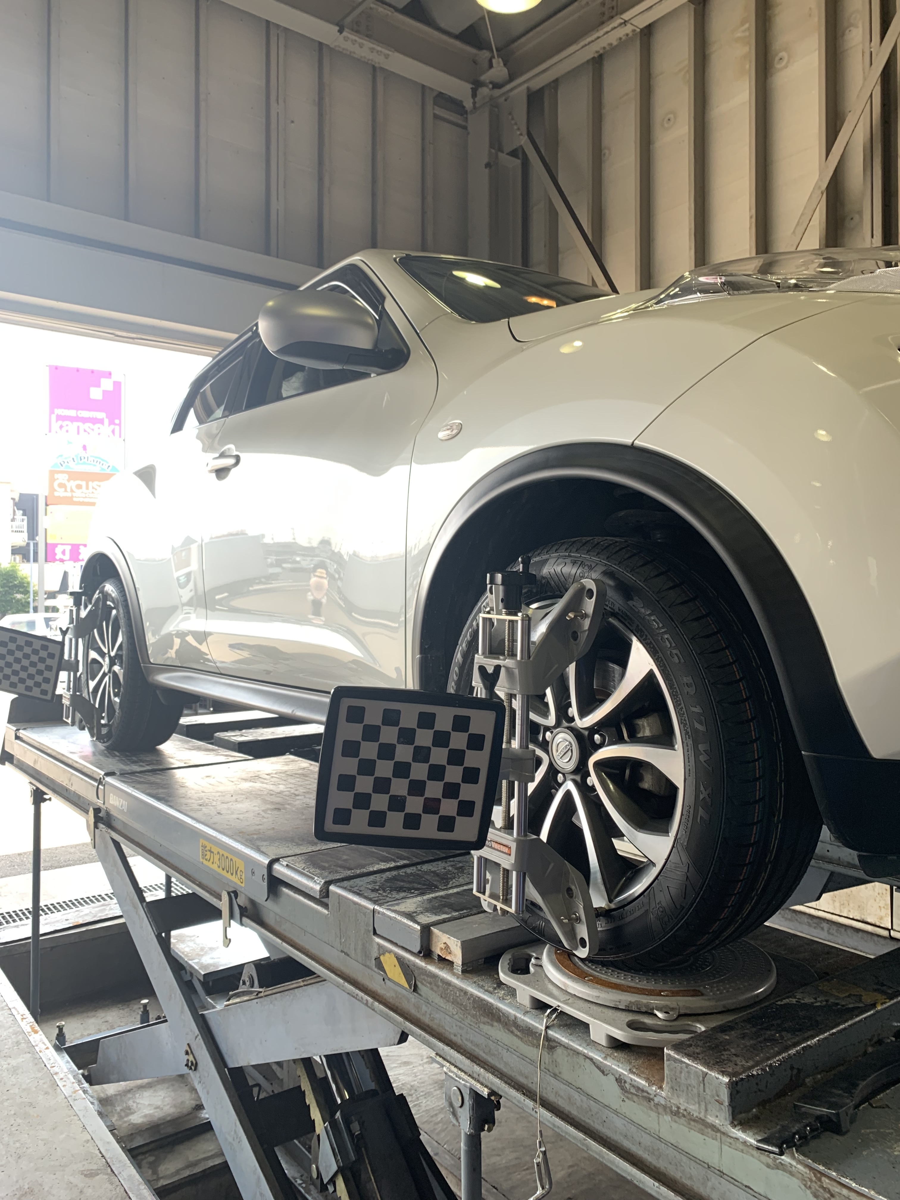 さて本日は、先日タイヤ4本の交換とアライメント調整の作業をさせて頂きました、ニッサン ジュークのご紹介です。