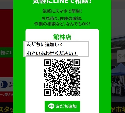 まずはLINEの友だち登録から!!!館林店のホームページにある下の図の部分をクリック