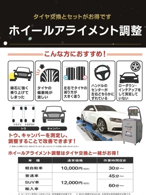 アライメント調整は下記の事が心当たりがある方にオススメです!