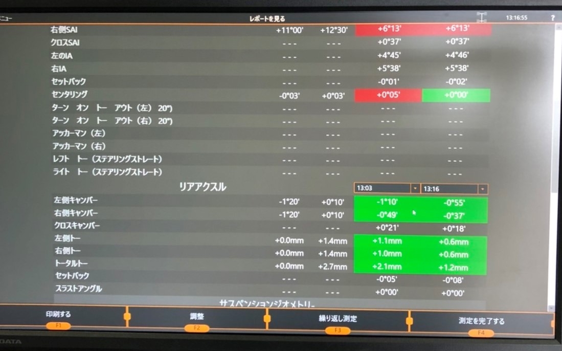 調整前ですが、フロント左側の方が外側にズレてしまっていて、