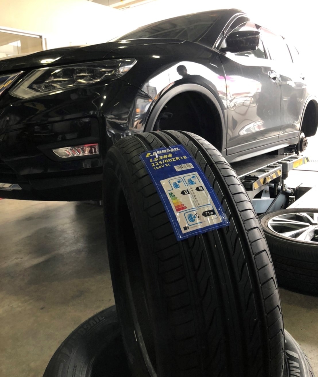 ニッサン・エクストレイル タイヤ交換・アライメント調整(ランドセイルLS388 225/60ZR18)