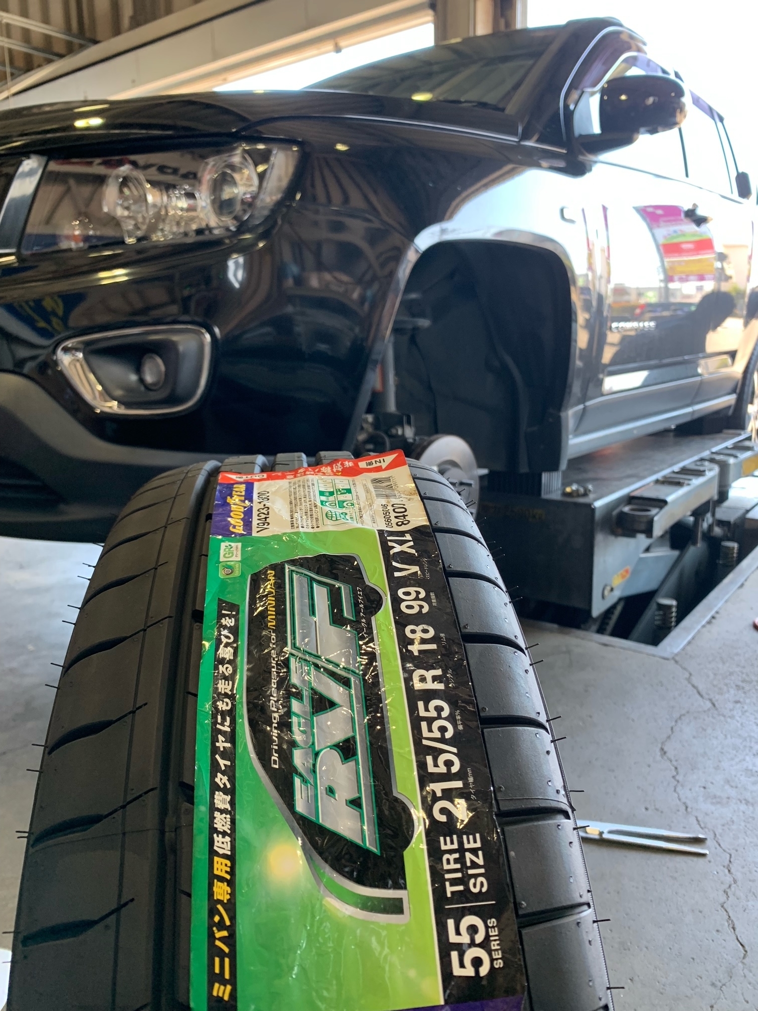 ジープ コンパス タイヤ交換・ハブ防錆・アライメント調整(グッドイヤー イーグルRVF 215/55R18 )