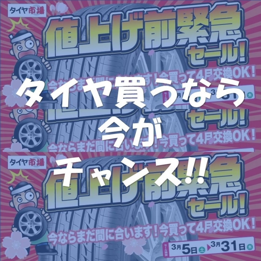 タイヤ買うなら今月がおすすめ!!!タイヤ値上げ直前セール開催中!!タイヤが安い!!!ホイールも安い!!