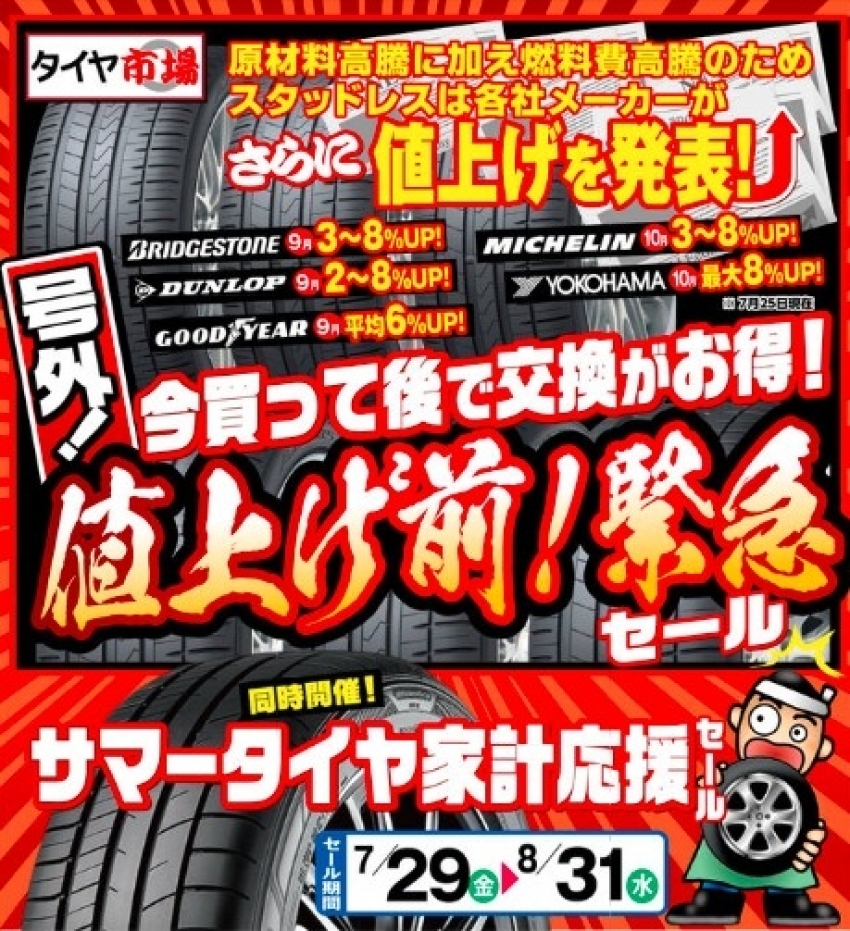 今買って後で交換がお得!!値上げ前!緊急セール!!7/29~8/31!!