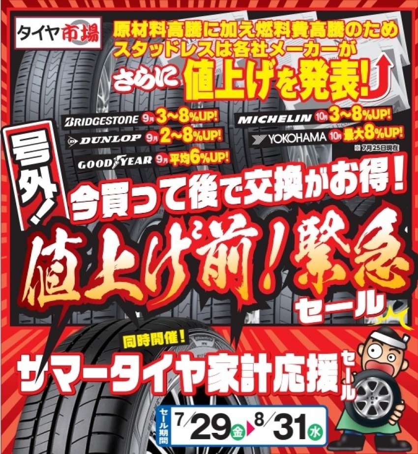 今買って後で交換がお得!!値上げ前!緊急セール!!7/29~8/31!!