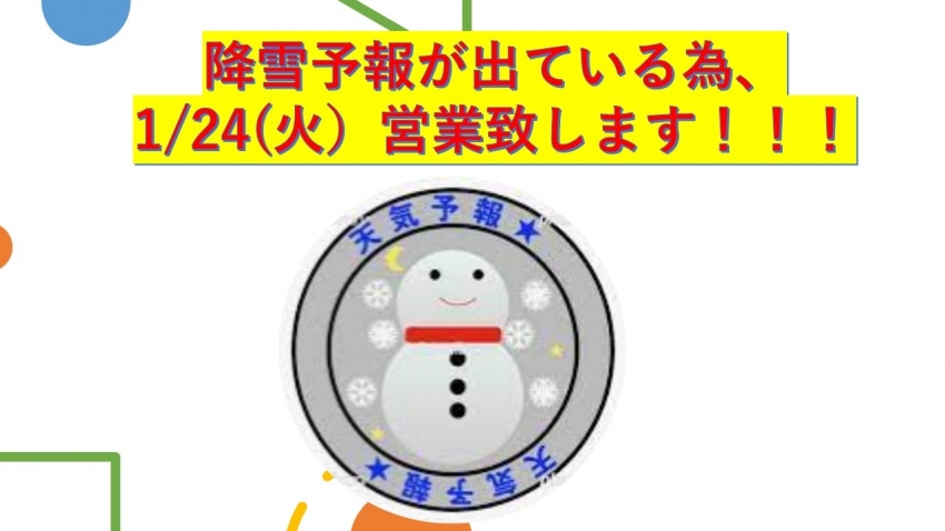 1/24(火)定休日でしたが降雪予報が出ている為、